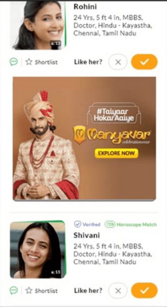 Matrimony In App Advertising